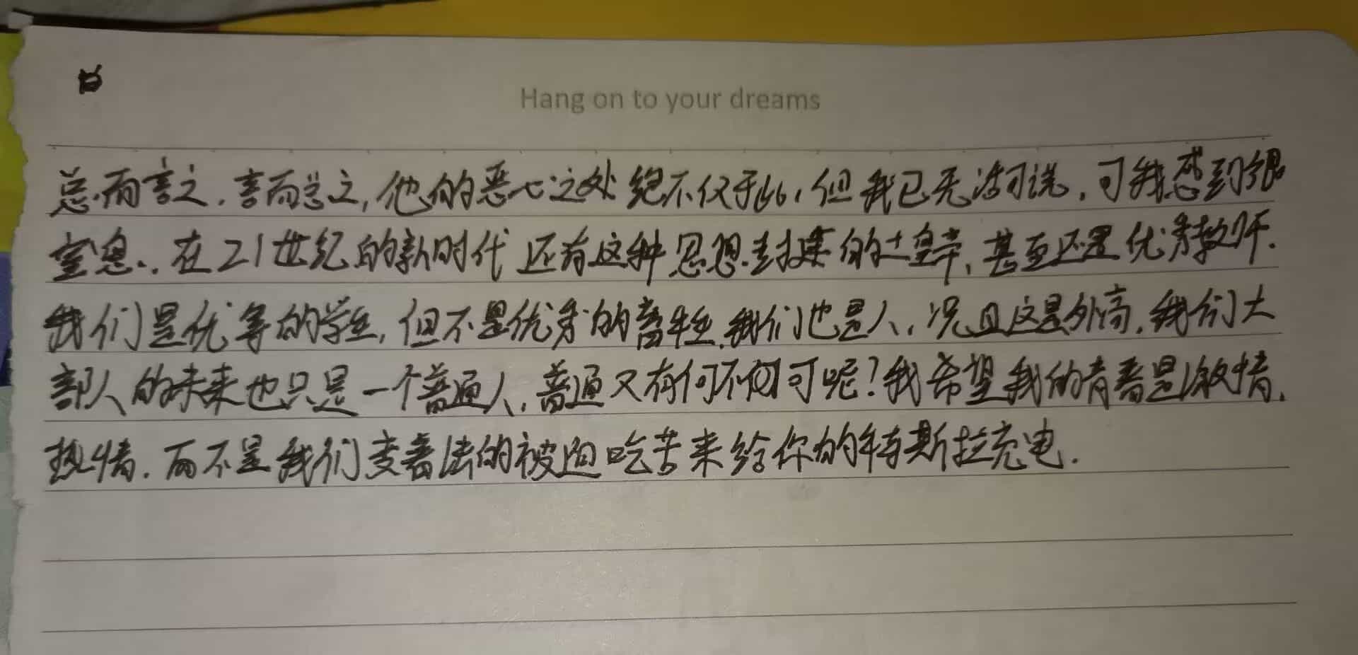 一张泛黄的作文纸上,密密麻麻的字迹控诉着一段令人窒息的高三时光。“生命的厚度不由一场考试丈量”,开篇这句清醒的呐喊,却被现实中班主任的侮辱与偏见撕得粉碎。